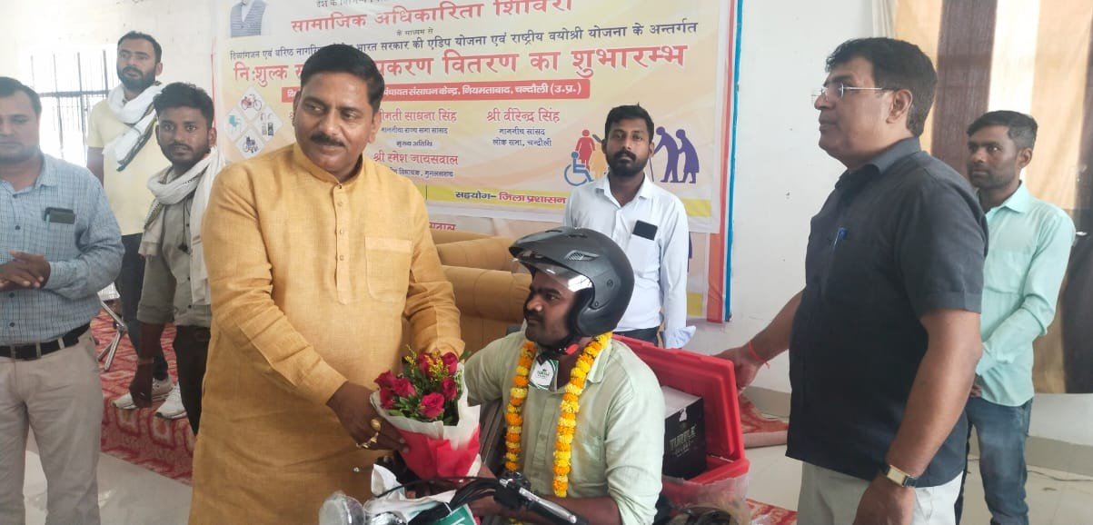 विधायक रमेश जायसवाल ने दिव्यांगजनों में बंटी ट्राई साइकिल व सहायक उपकरण