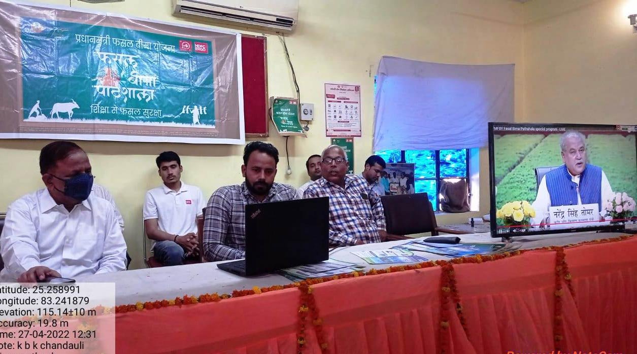 Young Writer, चंदौली। बिछियां कला स्थित कृषि विज्ञान केंद्र सभागार में बुधवार को फसल बीमा कार्यशाला का आयोजन किया गया। इस दौरान केंद्रीय कृषि मंत्री नरेंद्र सिंह तोमर ने वीडियो कांफ्रेंसिंग के जरिए चंदौली के किसानों से संवाद किया। इस दौरान अन्नदाताओं की बातें सुनीं और उनके सुझावों को भी संज्ञान में लिया। किसानों ने विभागीय योजनाओं के लाभ से अवगत कराया। कृषि मंत्री ने अन्नदाताओं से अपील किया कि सरकार की ओर से संचालित योजनाओं का लाभ जरूर लें।