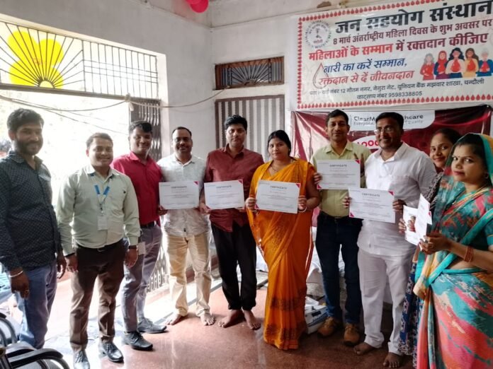 Young Writer, चंदौली। अंतर्राष्ट्रीय महिला दिवस के अवसर पर जन सहयोग संस्थान की ओर से रक्तदान शिविर का आयोजन गौतम नगर स्थित कार्यालय पर किया गया। इस दौरान कुल 11 लोगों ने रक्त दान किया, जिसमें महिलाओं की भागीदारी ने लोगों को सकारात्मक संदेश दिया।