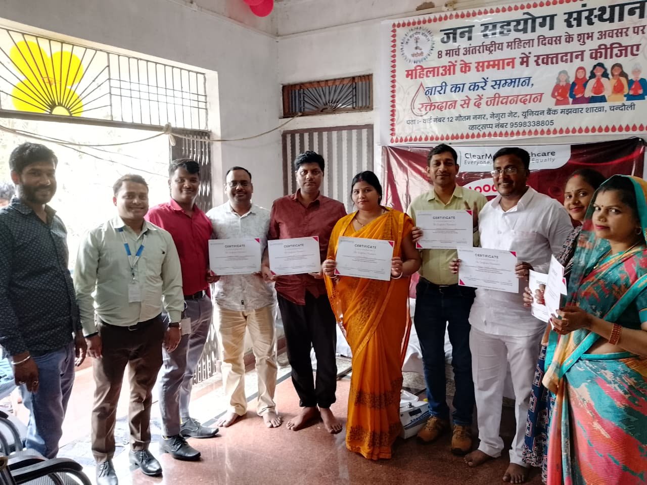 इस मौके पर संस्थान द्वारा क्लियरमेडी हेल्थ केयर ब्लड बैंक हॉस्पिटल के सहयोग से आयोजित शिविर में कुल 11 लोगों नें रक्तदान किया। इस दौरान अवधेश कुमार व उनकी पत्नी बबिता मौर्या तथा सूरज कुमार व उनकी पत्नी पूनम देवी ने रक्तदान कर दूसरों को भी प्रेरित किया। इसके अलावा बृजेश यादव, शिल्पा सिंह, सोनी मौर्या, रमेश तिवारी, संतोष गुप्ता, हदीश अंसारी, संतोष गुप्ता द्वारा रक्तदान किया गया। इस दौरान जन सहयोग संस्थान से अंकित सिंह, दीपक मौर्या, रंजीत सोनी, प्रियंका गुप्ता एवं अजीत सोनी नें सहयोग किया। साथ ही ब्लड बैंक की टीम में संदीप यादव एवं जितेंद्र कुमार ने अपना सहयोग प्रदान किया।
