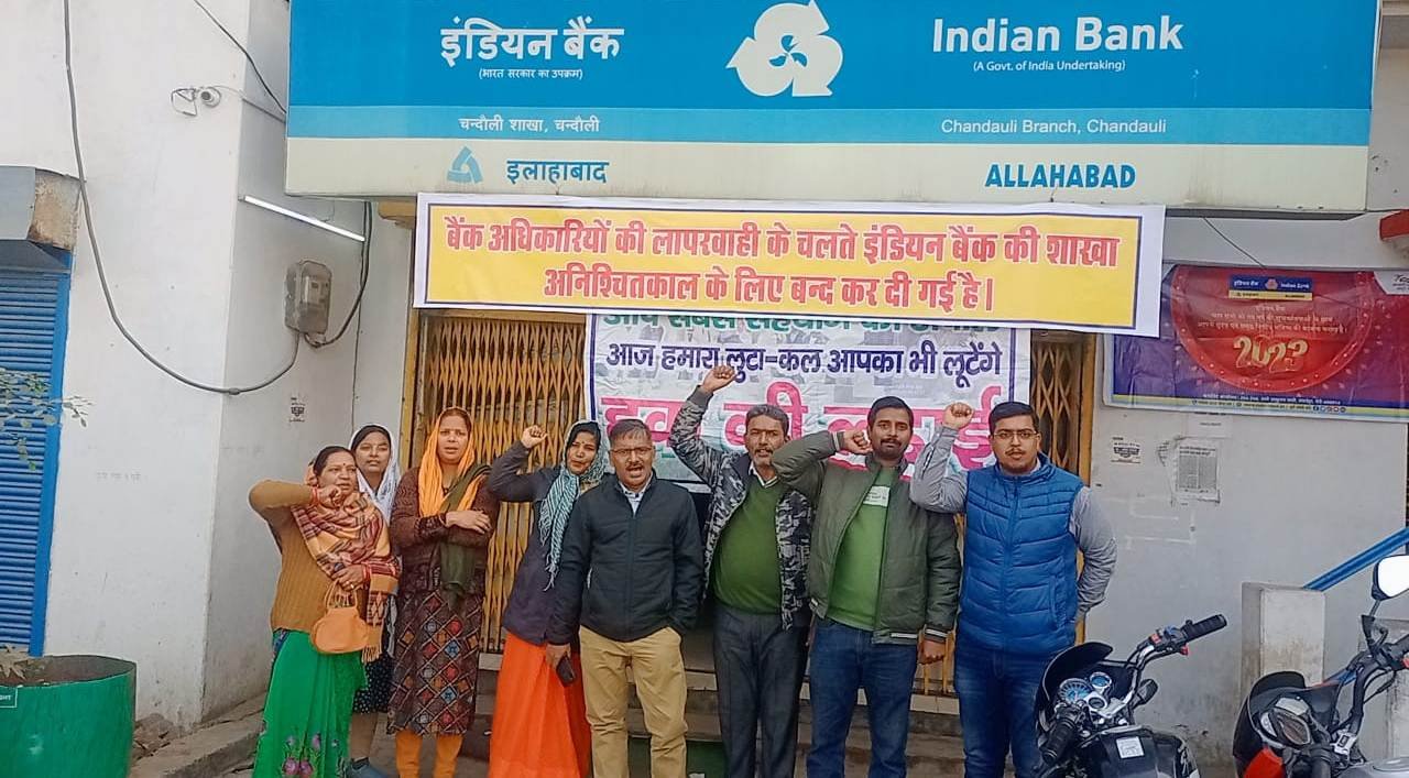 Young Writer, चंदौली। जनपद के इंडियन बैंक के पीड़ित लॉकरधारियों ने सोमवार को एक बार फिर बैंक पर एकत्रित होकर विरोध जताया। साथ ही साथ बैंक प्रबंधन को इस बात की चेतावनी दी कि अगर शाम तक लॉकरधारियों को संतोषजनक उत्तर नहीं दिया गया तो मंगलवार से इंडियन बैंक के दोनों शाखाओं पर विरोध प्रदर्शन किया जाएगा। इस दौरान बैंक की शाखाओं को अनिश्चितकाल के लिए बंद करा दिया जाएगा। इसकी पूरी जिम्मेदारी बैंक के लापरवाह अधिकारी और पुलिस प्रशासन की होगी।