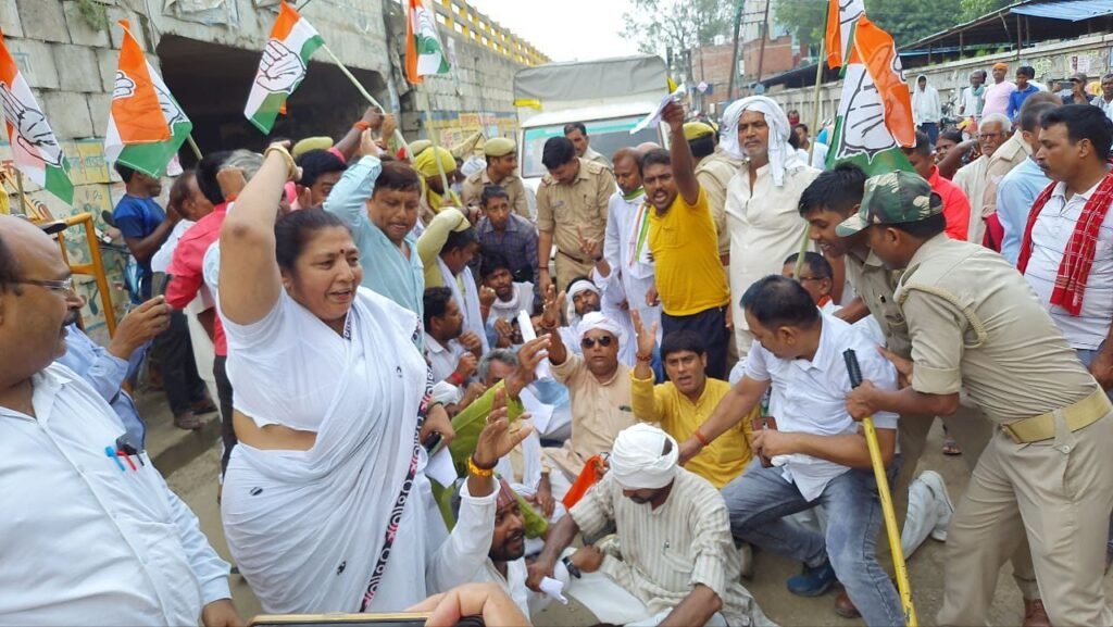 इस दौरान प्रदेश महासचिव देवेंद्र प्रताप सिंह मुन्ना ने कहा कि भाजपा सरकार की गलत नीतियों की वजह से आज देश मे बेरोजगारी, महंगाई चरम पर है। देश के ऊपर कर्ज का बोझ इतना बढ़ गया है कि सरकार को ब्याज चुकाने के लिए 12 लाख करोड़ कर्ज लेना पड़ रहा है। सरकार की नीतियों से विकास दर का सौ प्रतिशत कर्ज हो रहा है। जिलाध्यक्ष धर्मेन्द्र तिवारी ने कहा कि सरकार ने स्वतंत्र भारत के इतिहास में पहली बार खाद्य पदार्थों पर जीएसटी लगाया। दूध, चावल, गेंहू, तेल पर जीएसटी लगाकर जनता के ऊपर महंगाई थोपने का काम किया। आम जनता की आवाज बन चुके विपक्ष के नेता राहुल गांधी, सोनिया गांधी समेत विपक्ष के तमाम नेताओं को ईडी का डर दिखाकर जनता के मुद्दों को उठाने से दबाने का प्रयास कर रही है, जिसे किसी भी सूरत में बर्दाश्त नहीं किया जाएगा। कहा कि भाजपा सरकार जनविरोधी सरकार है जो पूंजीपतियों के इशारे पर काम कर रही है। इस मौके मधु राय, शहर अध्यक्ष मुगलसराय रामजी गुप्ता, वरिष्ठ कांग्रेस नेता आनंद शुक्ला, रजनी पांडेय, रामानंद यादव, गंगा प्रसाद, शशिनाथ उपाध्याय, प्रदीप मिश्रा, अरुण द्विवेदी, राहुल सिंह, शाहिद तौसीफ, तरुण पांडेय, रमेश बिंद, कुलदीप वर्मा, नवीन पांडेय, जुगल किशोर, राममूरत गुप्ता, प्रेम चंद्र गुप्ता, राधेश्याम यदुवंशी, अनिल श्रीवास्तव, अखिलेश यादव, अविनाश विश्वकर्मा, किरण श्रीवास्तव मौजूद रहे।