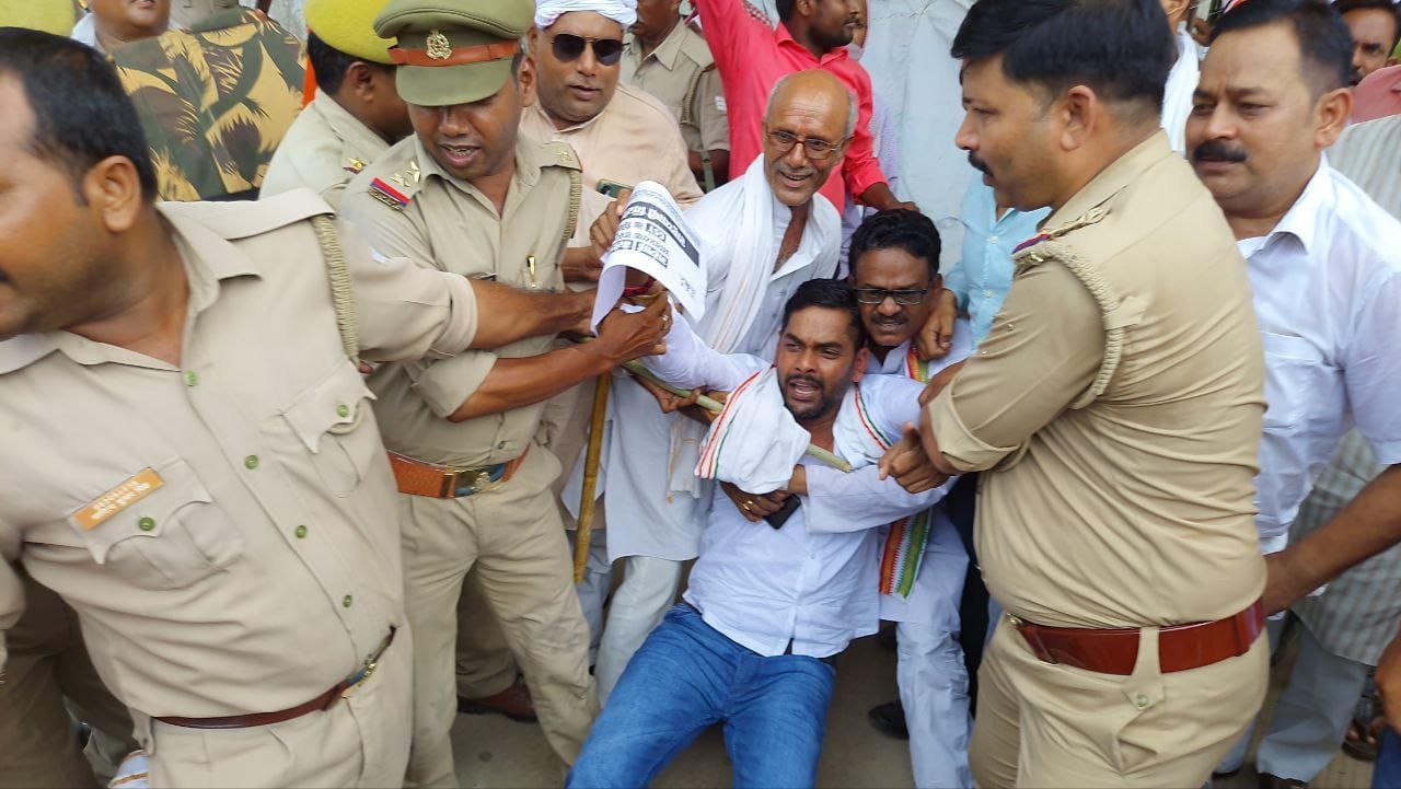 चंदौली। जिला कांग्रेस कमेटी ने शुक्रवार को केंद्र सरकार की गलत नीतियों के कारण बढ़ी बेतहासा महंगाई के विरोध में विरोध प्रदर्शन किया। इस दौरान कांग्रेसियों ने जिलाध्यक्ष धर्मेन्द्र तिवारी की अगुवाई में आसमान छूती महंगाई, बेरोजगारी, देश की आर्थिक बदहाली, जीएसटी की गलत नीतियों के खिलाफ मुख्यालय पर लामबंद दिखी। पंडित कमलापति त्रिपाठी पार्क के पास सदर तहसील गेट पर धरना प्रदर्शन किया। सरकार के विरोध में आंदोलित कांग्रेसजनों को पुलिस ने बलपूर्वक किया गिरफ्तार।