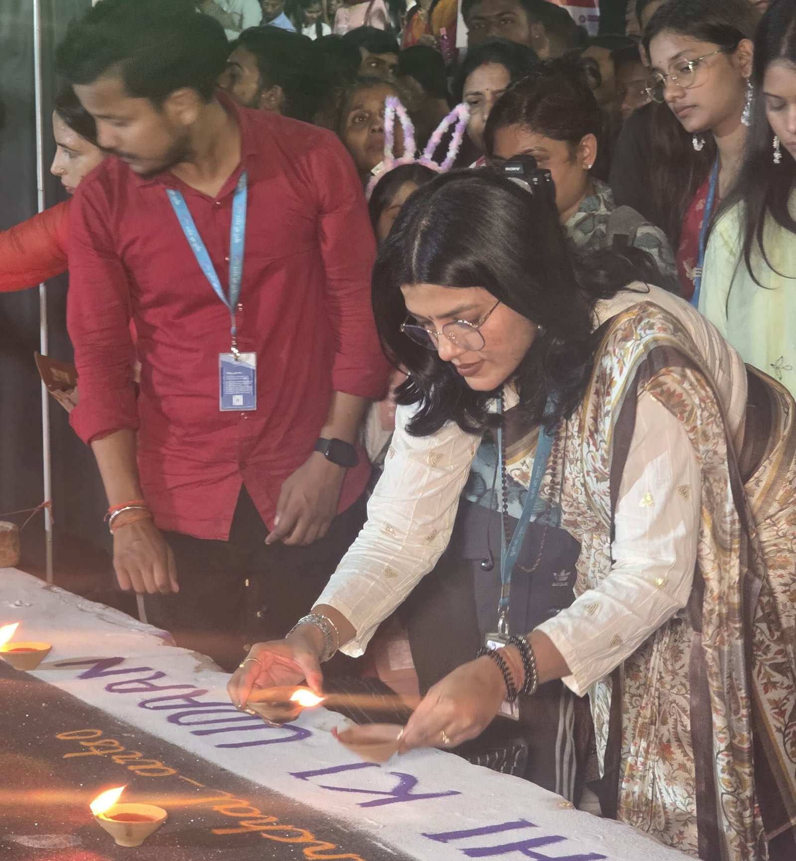 चंदौली। भारतवर्ष त्योहारों का देश है यहां एक त्यौहार बीतते ही नए त्यौहार का आगमन हो जाता है। परंतु कुछ ऐसे त्यौहार हैं जिनको मनाने में कितना भी उमंग लगाया जाए कम है। और शिव की नगरी काशी तो अपने आप में ही अलौकिक नगरी है। पौराणिक कथाओं के अनुसार देव दिवाली के दिन भगवान शिव ने त्रिपुरासुर राक्षस का वध करके देवताओं को भय से मुक्ति दिलाते हुए फिर से स्वर्ग का राज्य सौंप दिया था। तब सभी देवताओं ने दीये जलाकर भगवान शिव का स्वागत किया था,तभी से देव दिवाली मनाने की परंपरा है। इसी उपलक्ष्य पर प्रतिवर्ष की भांति खुशी की उड़ान संस्था द्वारा काशी के सुप्रसिद्ध अस्सी घाट पर देव दिवाली पर दीप प्रज्वलन एवं रंगोली का आयोजन करवाती है। रंगोली की अद्भुत अनुपम छटा पूरे घाटों पर सबसे ज्यादा आकर्षण का केंद्र बना हुआ था। क्युकी मान्यता है कि काशी एक ऐसा दैविक स्थान है जहाँ लोग मोक्ष और मृत्यु कि प्रार्थना करते है। यहाँ शरीर त्यागने वाला व्यक्ति सीधे स्वर्ग जाता है, और मृत्यु को भी जश्न के रूप में देखा जाता है।इसी विषय पर संस्था ने रंगोली बनाकर शिव की नगरी काशी मे मृत्यु भी एक उत्सव हो सकता है ऐसा संदेश दिया।सभी प्रतिभागियों को प्रमाण पत्र व पुरस्कार देकर सम्मानित किया गया। संस्था की संस्थापिका सारिका दुबे ने कहाँ कि प्रति वर्ष की भांति इस वर्ष भी हमारी संस्था घाट पर उपस्थित है लाखो भक्तो के स्वागत व काशी जिसके लिए जानी जाती है उस विषय को लेकर जो कि है “मृत्यु और उत्सव रंगोली बनाने वाले कलाकार बालाघाट मध्यप्रदेश की वाराणसी में इंस्टिट्यूट ऑफ फाइन आर्ट्स की छात्राए आँचल चौधरी, निहारिका प्रधान, मुस्कान मौर्या जिन्होने महादेव के सुन्दर छावी को आकार दिया। कार्यक्रम में मुख्य रूप से कोषाध्यक्ष चितेश्वर सेठ, डिजिटल हेड विशाल, मार्केटिंग हेड संध्या, कृतिका दुबे,आदित्य जायसवाल, आहिल खान, नेहा,संतोष एवं अन्य लोग उपस्थित रहे।