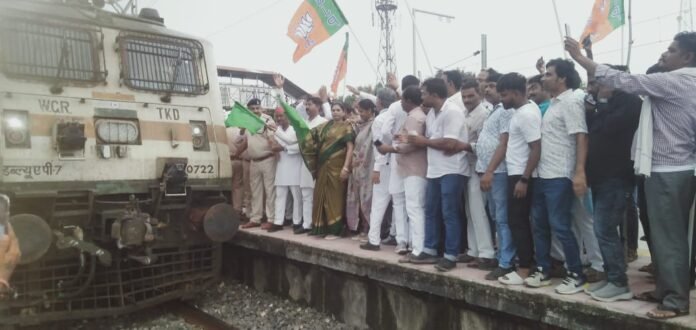 चंदौली। चंदौली मझवार रेलवे स्टेशन पर बुधवार से गया-नई दिल्ली महाबोधि एक्सप्रेस ट्रेन का ठहराव सुनिश्चित हो गया है। इसके लिए लम्बे समय से प्रयास हो रहे थे। राज्यसभा सांसद साधना सिंह की पहल व अन्य नेताओं के प्रयासों के बाद बुधवार को महाबोधि ट्रेन के ठहराव का उद्घाटन साधना सिंह ने किया। इस दौरान अन्य नेताओं की भी मौजूदगी रही।