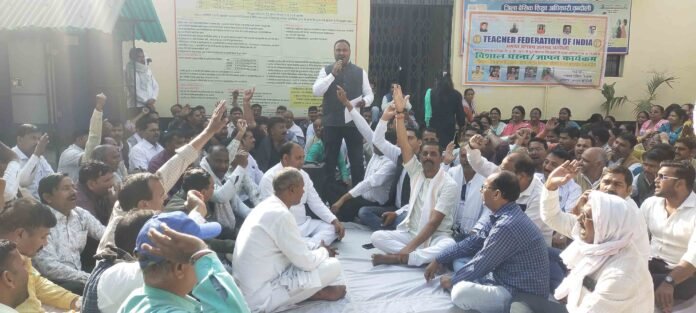 टीईटी की अनिवार्यता का आदेश शिक्षकों के साथ अन्याय,नाराज शिक्षकों ने बीएसए कार्यालय पर दिया धरना