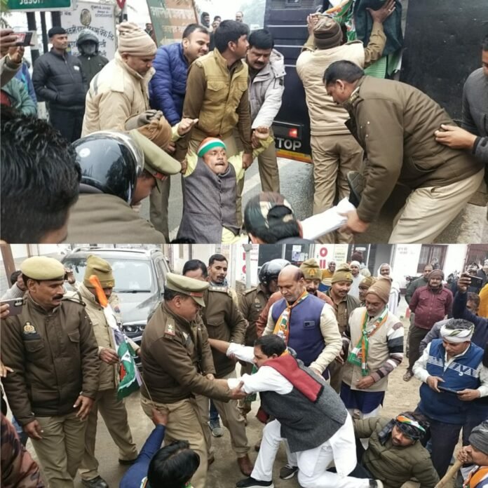 चंदौली। कांग्रेस जिला अध्यक्ष अरुण दृवेदी के नेतृत्व में बृहस्पतिवार को जिला शहर कांग्रेस कमेटी के संयुक्त तत्वावधान में यंग इंडिया व नेशनल हेराल्ड मामले में कांग्रेस कार्यकर्ता भजपा सरकार के खिलाफ जुलूस निकालकर नारेबाजी करते हुए भजपा कार्यालय का धेराव करने के जा रहे थे। जहा पुलिस चौकी के पास पुलिस व कार्यकर्ताओं के साथ हल्की नोकझोंक हुई वही पुलिस को चमका देते हुए कार्यकर्ता भजपा कार्यलय के समीप पहुच गए। इस दौरान पुलिस ने कार्यकर्ताओं को बल पूर्वक गिरफ्तार कर लिया और पुलिस वाहन में बैठाकर कोतवाली ले आई।