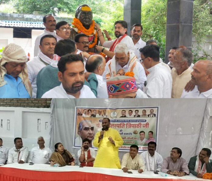 इस दौरान मुख्यातिथि ललितेश पति त्रिपाठी ने कहा कि सूबे के पूर्व मुख्यमंत्री स्व कमलापति त्रिपाठी ने पूर्वांचल के हर जिलों में अभूतपूर्व कार्य किया है। चंदौली हमेशा से उनकी कर्मभूमि रही हैं। जहा उन्होंने ने विकास की गंगा बहाई हैं। उन्होंने प्रदेश के मुख्यमंत्री उपमुख्यमंत्री, केंद्र के मंत्री, कांग्रेस अध्यक्ष के रूप में देश और प्रदेश की सेवा की। लेकिन उन्होंने अपना जीवन चंदौली के लिए समर्पित कर दिया। और चंदौली को विकास का आधारभूत ढांचा प्रदान किया। पूर्व सैयदराजा विधायक मनोज कुमार सिंह डब्लू ने कहा कि पंडित कमलापति त्रिपाठी ने जनपद में लिफ्ट पंप कैनाल बांध प्रणाली की दो हजार किलोमीटर नहरों का जाल, विद्युत, सड़क पुल,अस्पतालों एवं पॉलिटेक्निक सहित डिग्री कॉलेज एवं माध्यमिक शिक्षा की कई दर्जन संस्थाओं का जाल बिछाया। साथ ही चंदौली को बाढ़ और अकाल से मुक्त कर धान का कटोरा बना दिया। जिसको जनता कभी भुला नही सकती। इस दौरान कांग्रेस जिलाध्यक्ष अरुण दृवेदी, कांग्रेस महासचिव देवेंद्र मुन्ना,पूर्व जिलाध्यक्ष धर्मेंद्र तिवारी,सत्यमूर्ति ओझा,नगरपंचायत अध्यक्ष सुनील यादव गुड्डू,मधु राय, नवीन सिंह बबलू, राहुल सिंह, माधवेन्द्र मूर्ति ओझा, गंगा राम, सुर्यनाथ सिंह, धनंजय सिंह आदि मौजूद रहे। संचालन शिवेंद्र मिश्रा ने किया।