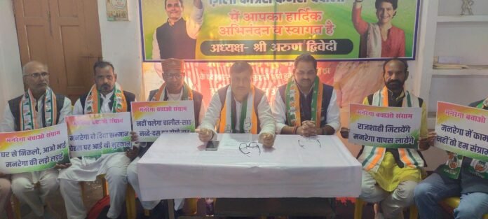 ग्राम पंचायतों को गांव स्तर की परियोजनाओं पर निर्णय का अधिकार देकर पंचायती राज व्यवस्था को मजबूती मिली और कोविड-19 जैसे संकट काल में यह कानून ग्रामीण अर्थव्यवस्था की जीवन रेखा साबित हुआ। कहा कि वर्तमान भाजपा सरकार इस कानून को कमजोर कर गरीबों की आजीविका और गरिमा पर चोट कर रही है। कांग्रेस ने 3 जनवरी से देशव्यापी “मनरेगा बचाओ संग्राम” शुरू किया है। प्रदेश भर में 5000 से अधिक मनरेगा चौपालें आयोजित की जा चुकी हैं। और 13 फरवरी को सभी 75 जनपदों में पदयात्राएं निकाली गईं। संग्राम के दूसरे चरण में 17 फरवरी को लखनऊ में विधानसभा घेराव किया जाएगा। उन्होंने अधिक से अधिक संख्या में कार्यकर्ताओं को लखनऊ पहुंचने का आह्वान किया। इस दौरान गंगा प्रसाद,रामानंद श्रीकांत पाठक, मुनीर खान, चंद्रवंश सिंह,अमरदेव राम और संतोष चौबे, सहित अन्य कार्यकर्ता मौजूद रहे