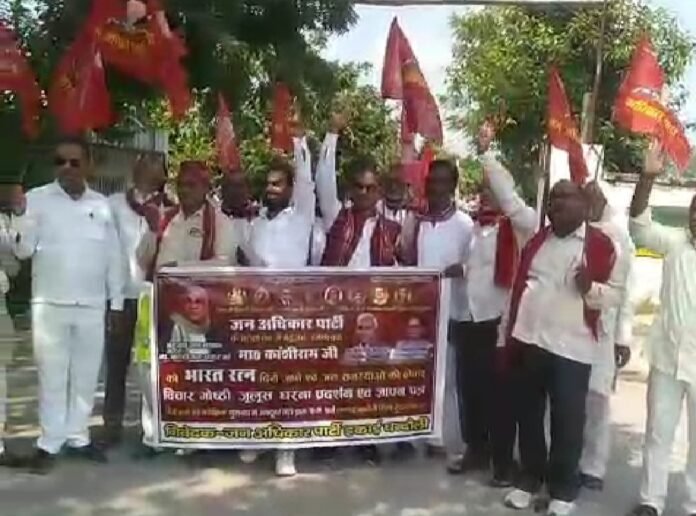 इस दौरान जिलाध्यक्ष कन्हैया सिंह कुशवाहा ने कहा कि बहुजन के नायक कांशीराम के सामाजिक व राजनैतिक योगदान को देखते हुए उन्हें देश के सर्वोच्च सम्मान भारत रत्न से सम्मानित किया जाए। और प्रदेश में बिजली विभाग द्वारा उपभोक्ताओं से बिना मीटर रीडिंग लिए उनके घरों पर मनमाना बिल भेज दिया जा रहा हैं। जिससे उपभोक्ता ऑफिस पर चक्कर काट रहे हैं। लेकिन उनका समाधान नही हो रहा हैं। उपभोक्ताओं के हित की देखते हुए बिजली विभाग द्वारा बिना मीटर रीडिंग लिए बिजली बिल न भेजा जाए। साथ ही बिजली बिल संसोधन की प्रकिया को सुलभ बनाया जाए। वही 300 यूनिट से कम बिजली उपयोग करने वाले उपभोक्ताओं का बिजली बिल माफ किया जाए। कहा कि आज देश में हरित क्रांति के तहत किसानों ने अनाज की पैदावार जैसे समर्थन मूल्य घोषित सभी उपज के साथ ही धान प्रति एकड़ 30 से 35 कुंतल तक बढ़ाकर देश के अनाज भंडार को भरते हुए देशवासियों के पेट की क्षुधा को शांत करने का कार्य किया था। इसके लिए किसानों को ध्यान में रखते हुए उनके समस्त उपज को न्यूनतम समर्थन मिलने व योजनाओं के अंतर्गत सरकारी खरीद सुनिश्चित किया जाए। वही किसानों के लिए सभी क्रय केंद्रो पर बोरा काटा व पैसे की व्यवस्था सुनिश्चित कराया जाए। बीते खरीफ के सीजन में प्रदेश के सभी किसानों की डीएपी व यूरिया के लिए दर-दर भटने के साथ ही दुगने मूल्य पर उर्वरक खरीदने को मजबूर हुए है। इसलिए प्रदेश में समय से किसानों के मांग को ध्यान में रखते हुए प्रयाप्त डीएपी व यूरिया उपलब्ध कराया जाए। अन्यथा जन अधिकार पार्टी के कार्यकर्ता बड़े आंदोलन को बाध्य होंगे। इस दौरान मंडल उपाध्यक्ष शिवपूजन मौर्य, गिरधारी मौर्य,अजय कुमार मौर्य,आनंद कुमार, यशवंत मौर्य, संजय कुमार मौर्य, धर्मराज मौर्य, मनोज मौर्य, प्रदुम्मन मौर्य, रमेश भन्ते, रामशंकर सिंह कुशवाहा, भरत बिंद, राजेन्द्र सिंह मौर्य मौजूद रहें।