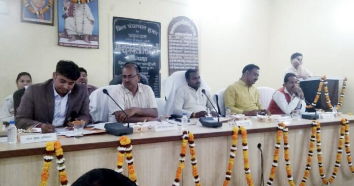 चंदौली। जिला पंचायत अध्यक्ष दीनानाथ शर्मा की अध्यक्षता में बैठक हुई। इस दौरान जिले की विकास के साथ ही विभिन्न मुद्दों चर्चा की गई। वित्तीय वर्ष 2025-26 के वार्षिक विभिन्न मदों (पंचम राज्य वित्त आयोग, 15वां वित्त आयोग, मनरेगा एवं जिलानिधि मद के सापेक्ष) कार्य योजना अनुमोदित की गयी है। इसके साथ ही बैठक में अन्य विषयों पर भी अध्यक्ष की अनुमति से विचार के बाद भी अनुमोदित किया गया।