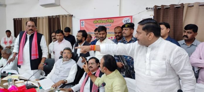 चंदौली। दिशा की बैठक में भाजपा व सपा के जनप्रतिनिधि आमने-सामने नजर आए। ठेकेदार व अधिकारियों के मुद्दे पर जहां सैयदराजा विधायक व रावर्टसगंज सांसद के बीच विवाद के बाद मुगलसराय विधायक रमेश जायसवाल व सकलडीहा विधायक प्रभुनारायण सिंह यादव आपस में भिड़ गए। मामला इस कदर बढ़ा कि दोनों विधायकों ने सारी मर्यादाएं तोड़ा दी और एक-दूसरे को तमीज सिखाने पर उतर आए। यहां तक एक विधायक ने दूसरे को होश में रहने की नसीहत भी दे डाली। यह सबकुछ ‘तू-तड़ाम‘ को लेकर हुआ, जिस पर सत्ता व विपक्ष के जनप्रतिनिधियों में जमकर बहस हुई।
