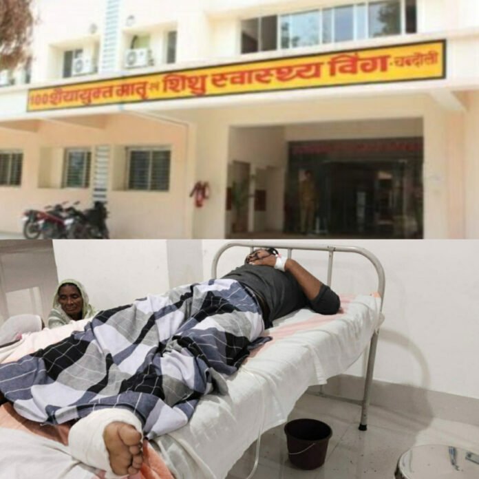 चंदौली। मुख्यालय स्थित हेरीटेज मातृशिशु अस्पताल में बृहस्पतिवार की देर रात एक युवक नशे की हालत में छत से कूद गया। जहा चिकित्सकों में हड़कंप मच गया। घटना में युवक की दोनों पैर की हड्डी टूट गई। मौक़े पर जुटे लोगों घटना की जानकारी पुलिस की दी। घटनास्थल पर पहुची पुलिस ने युवक को जिला अस्पताल में भर्ती कराया जहा उसका इलाज़ चल रहा हैं। वही घटना को लेकर अस्पताल में तरह-तरह की चर्चा व्याप्त हैं।