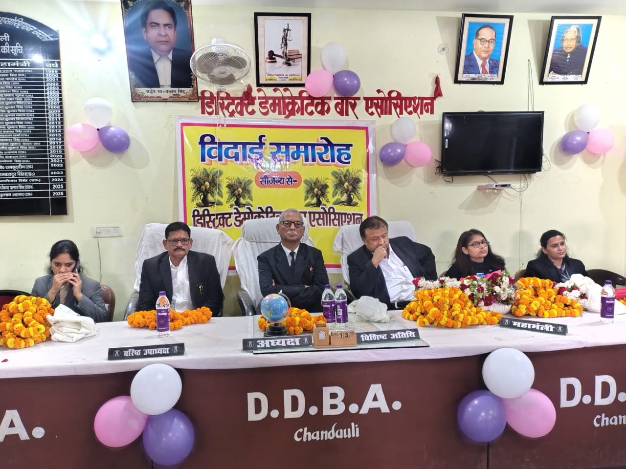 चंदौली। तहसील सभागार में डिस्ट्रिक्ट डेमोक्रेटिक बार एसोसिएशन के अध्यक्ष राजेश मिश्रा की अध्यक्षता में सोमवार को विदाई समारोह का आयोजन किया गया। समारोह में न्यायिक अधिकारियों को सम्मानपूर्वक विदाई दी गई। मुख्य रूप से अपर जिला एवं सत्र न्यायाधीश (पॉक्सो) अनुराग शर्मा, इंदु रानी, खुशी नूतन, माधुरी यादव उपस्थित रहे।