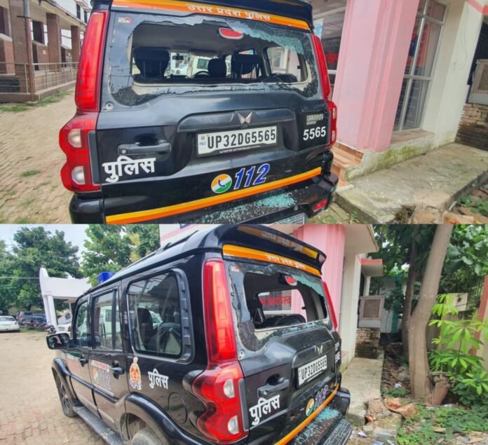Chandauli:पुलिस टीम पर युवक ने कुल्हाड़ी से किया हमला,112 वाहन छतिग्रस्त