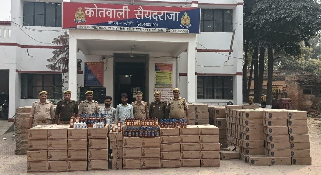 उन्होंने बताया कि सैयदराजा पुलिस स्वाट टीम को मुखबिर से सूचना मिली कि एक ट्रक में अवैध शराब लेकर बिहार की ओर जाया जा रहा है। उक्त सूचना पर पुलिस ने एनएच-19 हाइवे पर ग्राम जेठमलपुर स्थित काले पीर बाबा मजार के पास घेरे बंदी कर चेकिंग अभियान चलाया गया। इसी दौरान चंदौली की ओर से आ रहे ट्रक संख्या RJ14JQ3205 को रोककर तलाशी ली गई। तलाशी के दौरान ट्रक के आगे कागज की गुल्ली जिसमें धागा लपेटा जाता है। रखी गई थी। इनके नीचे छिपाकर अवैध अंग्रेजी शराब की पेटियां रखी गई थीं। जांच में कुल 849 पेटी शराब बरामद हुई पुलिस ने ट्रक चालक हरिश्चन्द्र तथा परिचालक अंकित को गिरफ्तार कर लिया। इस दौरान सीओ देवेंद्र कुमार थानाध्यक्ष अशोक कुमार मिश्रा, उपनिरीक्षक राजेश कुमार, स्वाट टीम प्रभारी निरीक्षक रामजनम यादव, आदि मौजूद रहे।