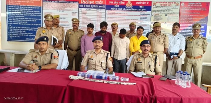 चंदौली। विगत दिनों पूर्व मुगलसराय थाना क्षेत्र हुए लूटकांड में पुलिस ने व स्वाट व सर्विलांस क्राइमब्रांच की संयुक्त टीम ने मुखबिर की सूचना पर इंडियन इंस्टीट्यूट कॉलोनी के समीप चार आरोपियों को गिरफ्तार कर लिया। जिनके कब्जे से 2300 नगद एक सोने की लाकेट दो मोबाइल एक धारदार तलवार व एक बाइक बरामद किया गया। उक्त मामले का खुलसा पुलिस अधीक्षक आकाश पटेल ने मुगलसराय कोतवाली में किया।