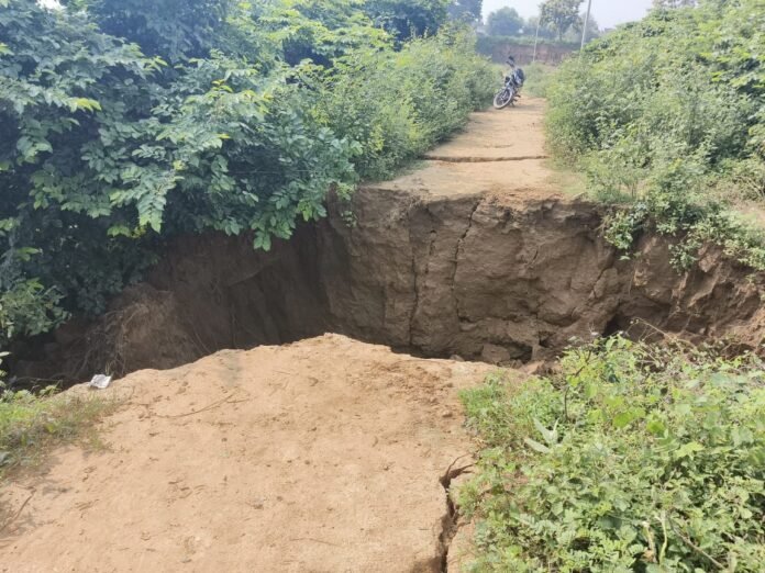शहाबगंज। विकास खंड कार्यालय के समीप अतायस्तगंज गांव स्थित नाले पर बना सायफन हाल ही में धंस गया है। जिससे न केवल आवागमन बाधित हो रहा है बल्कि किसानों की सिंचाई व्यवस्था पर भी संकट मंडरा रहा है। यह सायफन वर्षों से ग्रामीणों के लिए एकमात्र संपर्क मार्ग का काम भी करता आ रहा था। साथ ही नाले के आर-पार खेतों में पानी पहुँचाने के लिए एक मात्र साधन भी था। अब इसके धंसने से जहां आमजन की सुरक्षा खतरे में पड़ गई है। वहीं सैकड़ों बीघा फसलें सूखने की कगार पर हैं।