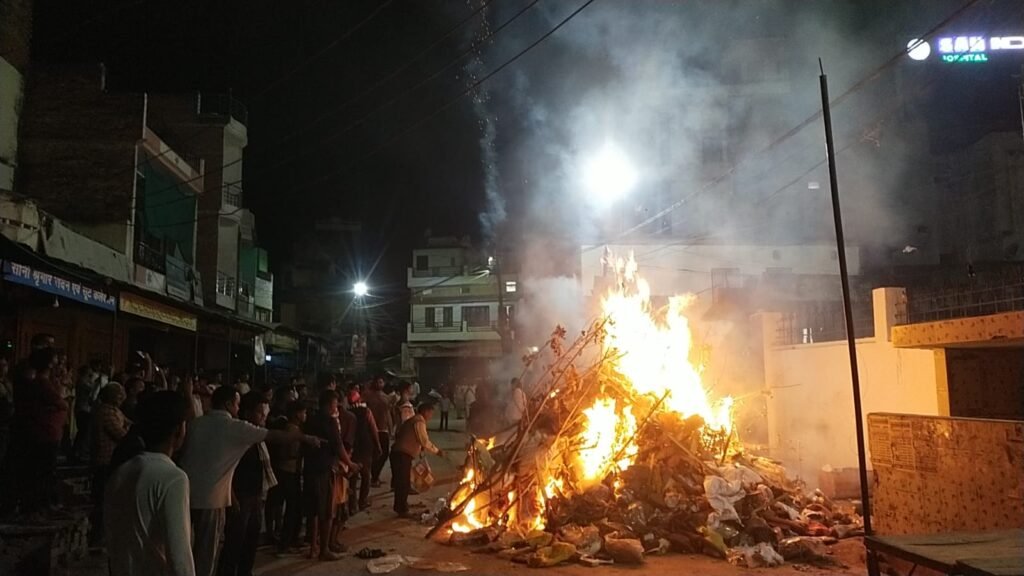 होलिका दहन विधिविधान और वैदिक मंत्रोच्चार के साथ संपन्न हुआ। पंडितों द्वारा पूजा-अर्चना कर समस्त नगरवासियों की सुख-समृद्धि और खुशहाली की कामना की गई।