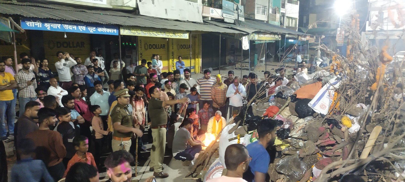 चंदौली। पुरानी बाजार में होलिका दहन का आयोजन शांतिपूर्ण और धार्मिक वातावरण में संपन्न हुआ। कार्यक्रम में सीओ सदर देवेंद्र कुमार सहित भारी पुलिस बल की मौजूदगी रही जिससे सुरक्षा व्यवस्था चाक-चौबंद दिखाई दी। प्रशासन की सतर्कता के चलते पूरे आयोजन के दौरान शांति और सौहार्द बना रहा।
