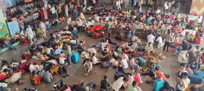 रेलवे की ओर से यात्रियों की सुविधा के लिए तीस जोड़ी से अधिक स्पेशल ट्रेनें चलाई जा रही है। लेकिन अधिकतर ट्रेनें अपने समय से अत्यधिक देरी से चल रही है। ऐसे में अभी भी लोग नियमित ट्रेनों पर ही आवागमन के लिए भरोसा कर रहे हैं। वहीं ट्रेनों में आवागमन के लिए यात्रियों की भीड़ कम नहीं हो रही है। इसका असर ट्रेनों की भीड़ पर दिख रहा है। बुधवार को मुंबई जाने वाली ट्रेन की स्थिति देखने पर पता चला कि चार जुलाई तक किसी ट्रेन में सीट उपलब्ध नहीं है। चार जुलाई को पटना बांद्रा टर्मिनस में स्लीपर में सात ओर थर्ड एसी में दो नंबर वेटिंग है। वहीं पटना लोकमान्य तिलक एक्सप्रेस के स्लीपर में आठ, एसी में 31, रांची लोकमान्य तिलक टर्मिनस में स्लीपर में 19 और थर्ड एसी में 12, मुंबई मेल में स्लीपर में 18 जबकि थर्ड एसी में सात वेटिंग टिकट मिल रहा था। इसी तरह पाटलिपुत्र लोकमान्य तिलक एक्सप्रेस के स्लीपर में 13 जबकि थर्ड एसी में पांच, डिब्रूगढ़ लोकमान्य तिलक एक्सप्रेस के स्लीपर में 20 जबकि थर्ड एसी में 16 वेटिंग रहा। यही हाल दिल्ली, चेन्नई और कोलकाता जाने वाली ट्रेनों का भी है। यह नहीं है कि सिर्फ जाने वाली ट्रेनों में बल्कि मुंबई, दिल्ली, बेंगलुरु और चेन्नई, अहमदाबाद की ओर से आने वाली ट्रेनों की स्थिति भी दयनीय है। स्थिति यह है कि ट्रेन के पीडीडीयू जंक्शन पर पहुंचते ही सवार होने के लिए यात्रियों में मारामारी की स्थिति हो रही है। वहीं ट्रेनों के लेट होने के कारण लोग यात्री हाल में घंटों बैठकर ट्रेन का इंतजार कर रहे हैं।
