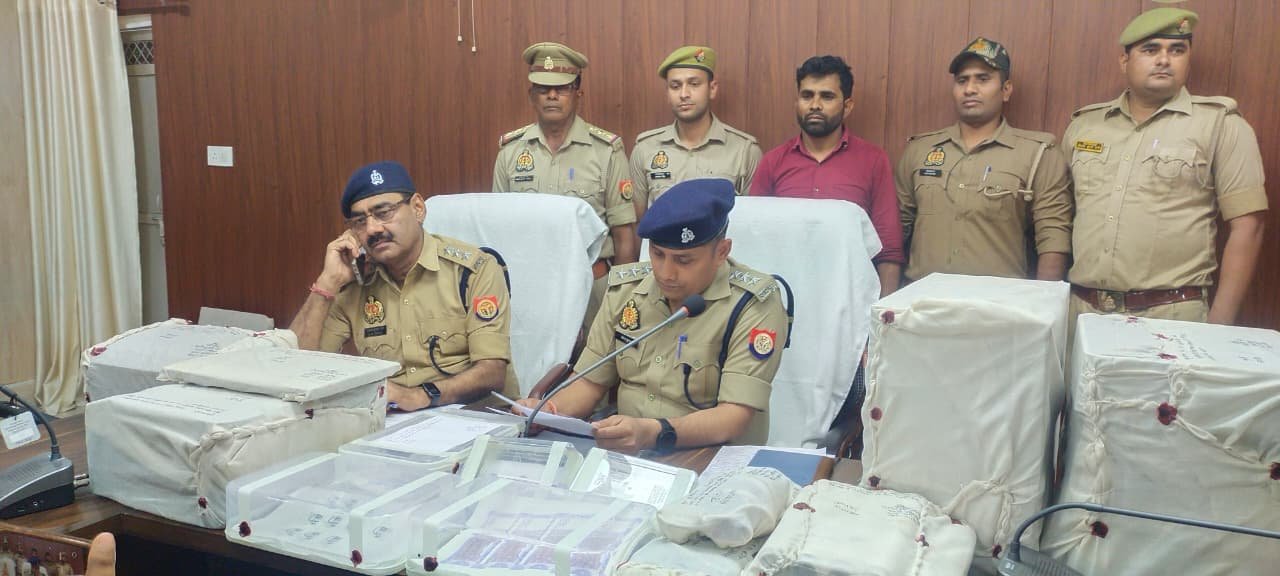 चंदौली। थाना अलीनगर क्षेत्र में पुलिस ने सोमवार को मुखबिर की सूचना पर जाली नोट बनाने और उनकी सप्लाई करने वाले गिरोह का पर्दाफाश करते हुए एक अभियुक्त को गिरफ्तार किया कर लिया। जब कि दो बाल अपचारियों को पुलिस अभिरक्षा में लिया गया है। पुलिस ने मौके से 100 रुपये के 55 जाली नोट व 442 अर्धनिर्मित जाली नोट के साथ नोट छापने के अत्याधुनिक उपकरण भी बरामद किए गए हैं। उक्त मामले का खुलासा सीओ मुगलसराय अरुण कुमार सिंह व सीओ सदर देवेंद्र कुमार ने पुलिस लाइन में किया।